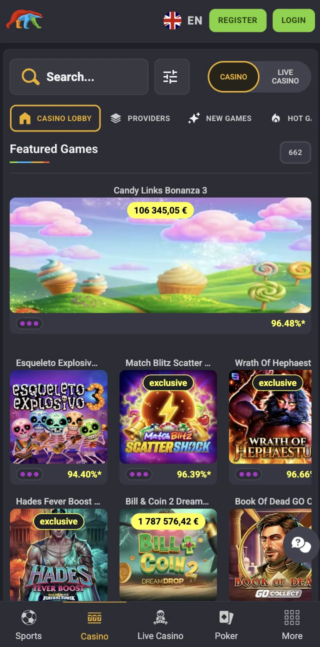 - Naviger til nettstedet vårt og velg Casino eller Sportsbook.